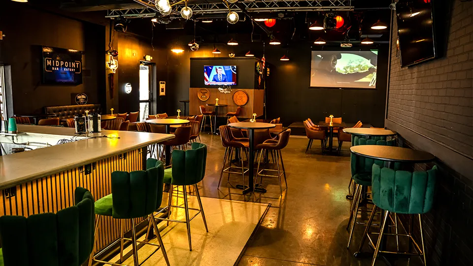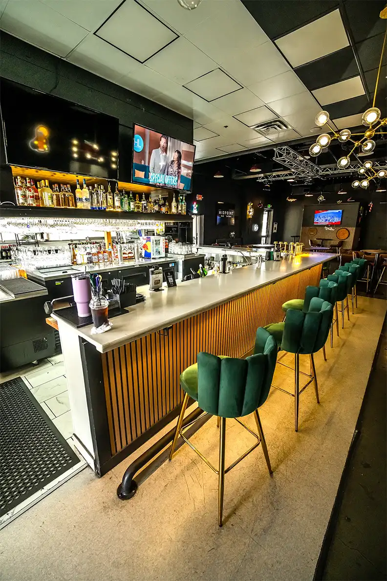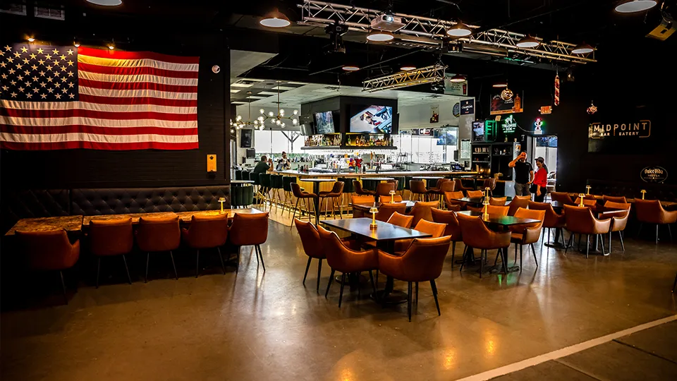 (832) 437-8001The Bar and Restaurant is the heart of Midpoint, where great food, crafted drinks, and live entertainment come together. Designed to offer a classic bar and dining experience, this space features both a vibrant bar and a comfortable table setting for guests who enjoy a more traditional night out.